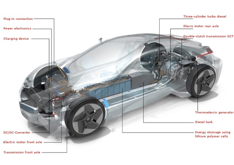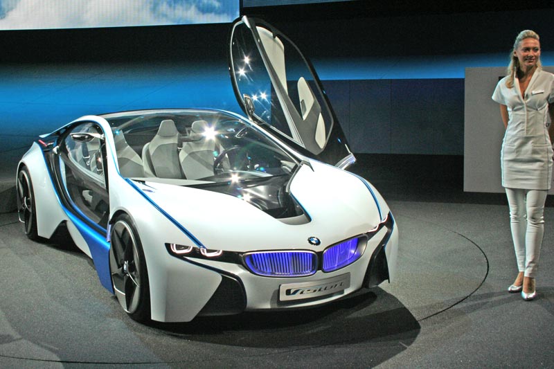 • Offering a full-hybrid concept, the BMW Vision EfficientDynamics concept car is powered by a three-cylinder turbodiesel and two electric motors. Overall system output is