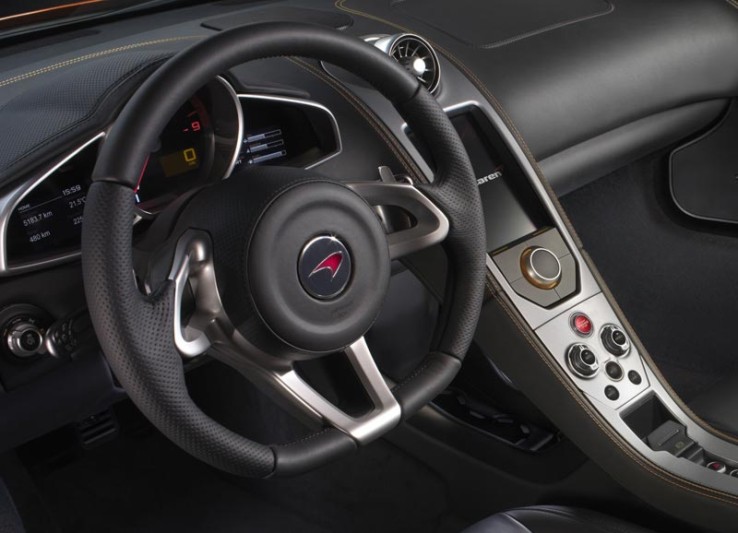 “With the interior, we have created a real step forward in the packaging of a sports car. Moving the driver and passenger closer together improves driving control and moving the pedals improves the problem of wheel well intrusion. We also repackaged many of the major components that normally sit under the dashboard to allow for more space and a unique form. Packaging is one of the 12C’s really strong points,� said Frank Stephenson.