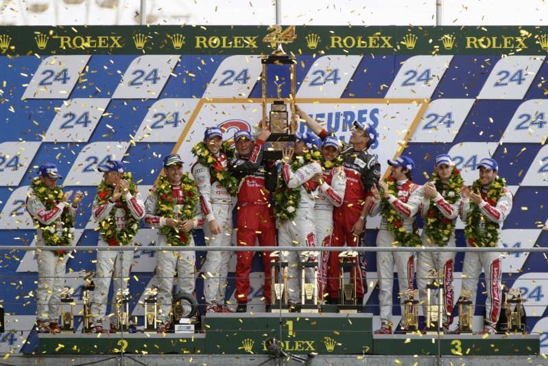 “This was a race of the kind you can arguably experience only at Le Mans,� said Head of Audi Motorsport Dr. Wolfgang Ullrich after his four Audi R18 cars had crossed the finish line. “You should never rejoice too early at Le Mans, which was obvious again especially on Sunday noon. The whole world was already talking about a one-two-three- four victory and all of a sudden two of our cars had accidents almost simultaneously. That the squad repeatedly managed to repair the cars so quickly after the slips clearly speaks for Audi Sport Team Joest that can simply be banked on at Le Mans. On the whole, I can only take my hat off to the entire squad of Audi Sport that worked extremely hard for a year to make this triumph possible. It was a very big challenge to develop a hybrid car in such a short time that is quick and able to hold up for 24 hours. The fact that, as in 2001 with the TFSI engine and in 2006 with the TDI, we managed to be successful right on the first run simply proves the level of technological expertise that is available at Audi. This is a great day for Audi Sport, for Audi and for the e-tron quattro.�