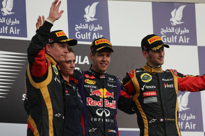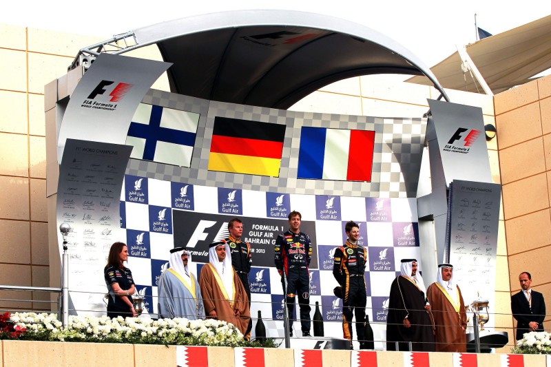 German triple Formula 1 World Champion Sebastian Vettel and Red Bull simply smoked their opponents in Bahrain this Sunday afternoon, and although his three-stop race strategy left him only 9.1s ahead of Kimi Raikkonen’s two-stopping Lotus, the margin of superiority was very apparent. He scored his second victory of the 2013 Formula 1 season and the 28th since he started to drive Formula 1. French Lotus driver Romain Grosjean completed the Renault engine occupied podium, thus repeating last year's podium arrangement. For the French engine manufacturer, it was the 154th Formula 1 victory, while it was the 36th for the Red Bull Racing Renault partnership.