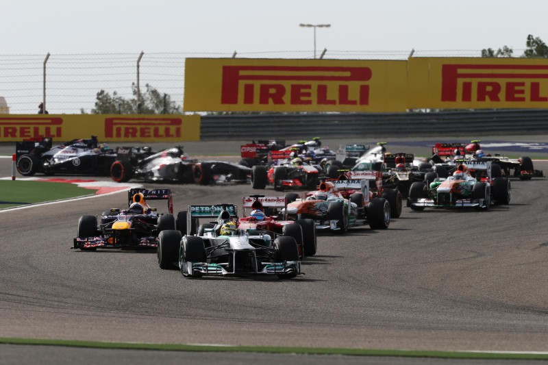 Behind them, fifth place was at a lot of moments the subject of a breath-taking fight between Australian Red Bull driver Mark Webber, the two McLaren Mercedes (with Zain logo instead of Vodafone) and both Mercedes cars. In particular, the McLaren pair of Jenson Button and Sergio Perez had such a heated fight that the 2009 Formula 1 World Champion at one stage instructed his team over the radio to 'Calm him down' after Perez touched the Englishman's right-rear wheel with his front wing. The tenacious McLaren Mercedes duel reminded a lot of Formula 1 fans of the Red Bull wheel to wheel fight in this year's Malaysia Grand Prix, which almost ended with a Red Bull crash.