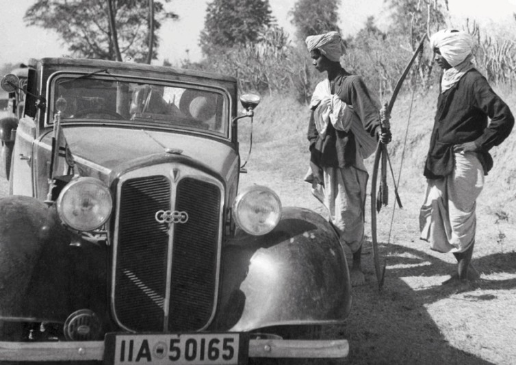 The natives looked in astonishment at the DKW Meisterklasse from Paul Hartlmaier at his expedition in India 1935/1936