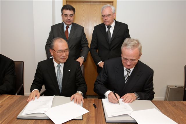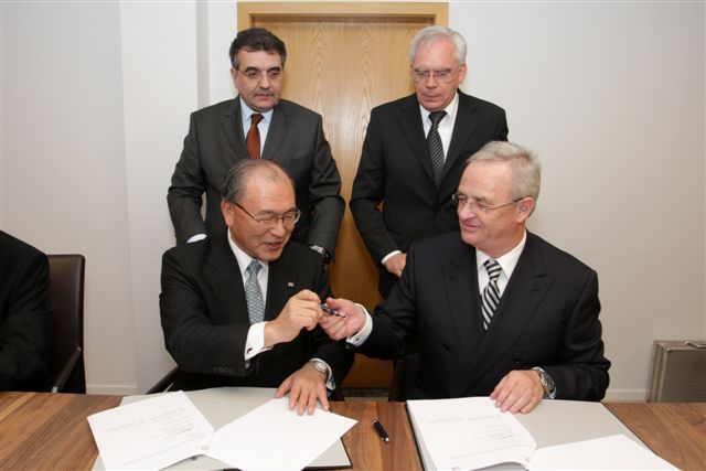 The letter of intent was signed by Prof. Dr Winterkorn and Atsutoshi Nishida, president and chief executive officer of the Toshiba Corporation. Nishida said: "We look forward to building up a mutually beneficial partnership with Volkswagen, a clear leader in the automotive industry? making strong initiatives in the development of environmentally-friendly cars. The combined know-how of the two international technology groups Volkswagen and Toshiba will be an important step towards the drive technologies of tomorrow." He continued that this is a good signal for mobility based on ecology and economy.