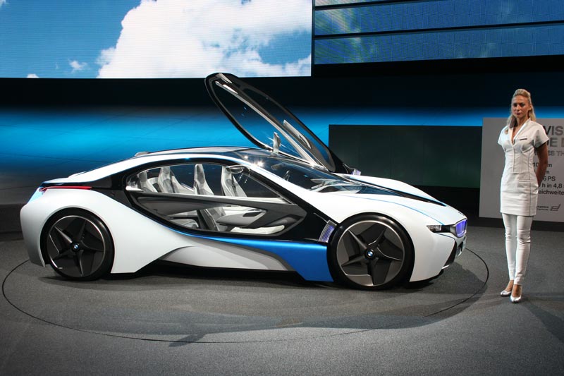 • Offering a full-hybrid concept, the BMW Vision EfficientDynamics concept car is powered by a three-cylinder turbodiesel and two electric motors. Overall system output is