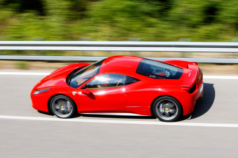 Thanks to a new 4,499 cc V8 engine, which punches out 570 CV, the F1 dual-clutch gearbox and a 1,380 kg dry weight, the 458 Italia boasts an extraordinary weight-power ratio of 2.42 kg (a power-weight ratio of 413 CV per ton). This means it sprints from 0 to 100 km/h in under 3.4 seconds and hits a maximum speed of over 325 km/h.