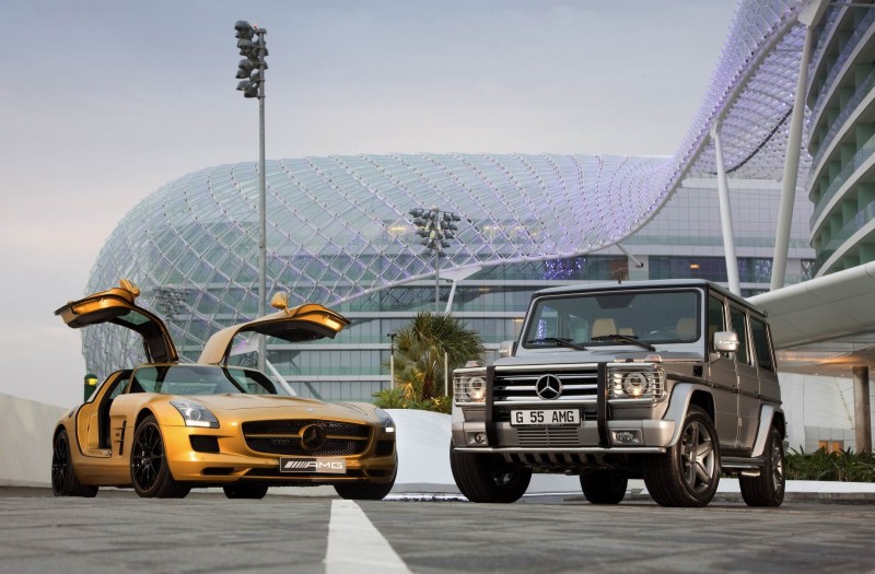 SLS AMG Desert Gold, G 55 AMG 79 Edition and GLK V12 premier in Dubai - E-Class Convertible premiers in Abu Dhabi